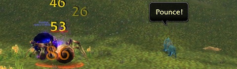 And it's not just the shapeshifting powers that confuse Zen'Kiki. He is able to assume the form the moonkin with little trouble, but there is still trouble in assuming the power that comes with it. 'Shapeshift! Here comes the moonfire!' Boom, boom, boom! The moonfire spam is like a machine gun, but all he manages to target is himself. 'Oof! Yowch! It burns like the moon!' Poor Zen'Kiki.